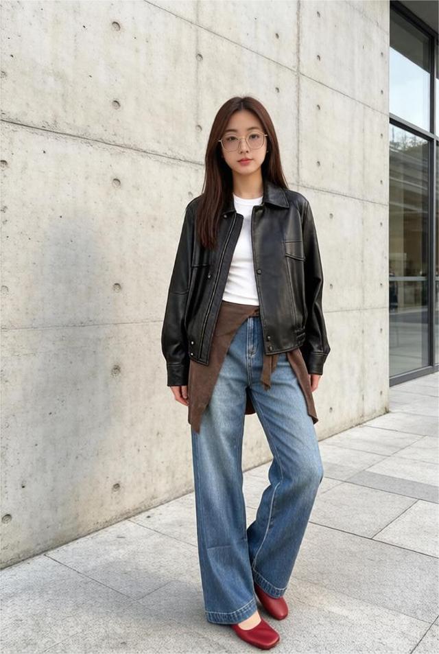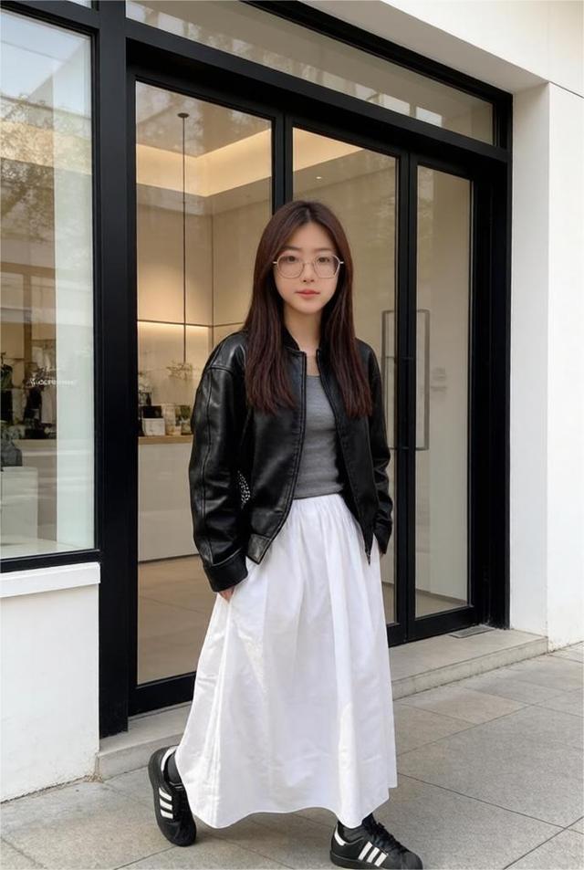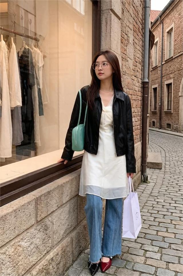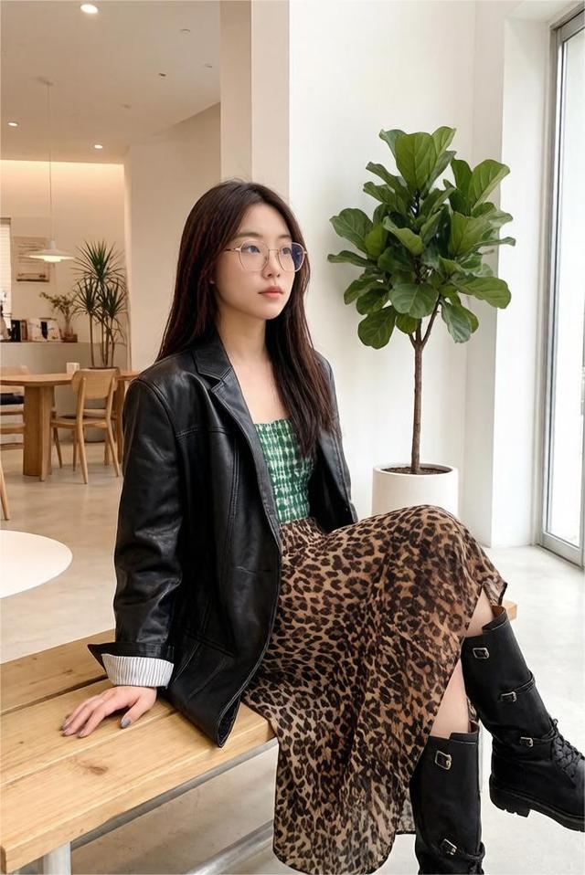 一是皮衣元素。从时尚博主的上身效果来看,去掉金属装饰的极简款皮衣,上身干净利落,适配多种风格。轻熟气质的女生可以选,甜美挂女生可以尝试,走清冷文艺、中性禁欲风的姐妹,也能轻松驾驭,不挑风格不挑人。