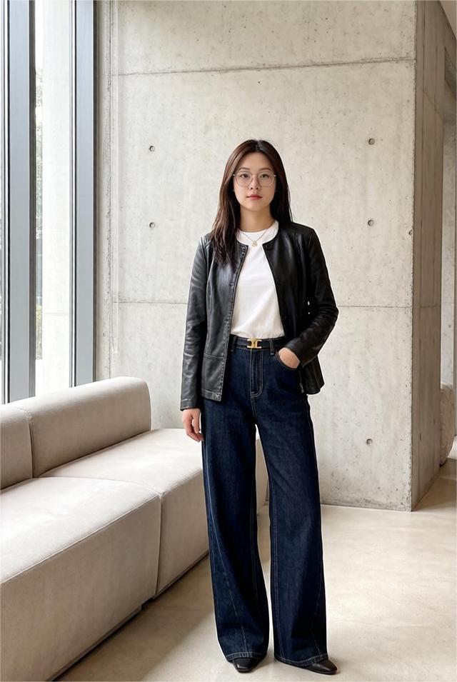 三是皮衣颜色。选色时可以多偏向经典耐看的款式,时尚博主常穿的纯黑色皮衣就是很稳妥的选择,基础色系包容性强,既能修饰身形、弱化赘肉感,日常打理也很方便,即便不用频繁清洗,也不容易显得脏乱邋遢。